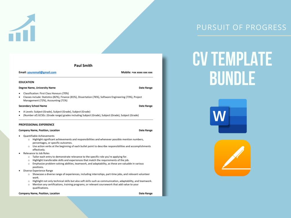 • Our templates are optimised for desktop PCs and Mac devices, ensuring compatibility with Microsoft Word, Pages, and Google Docs. Use of other software may result in formatting issues.